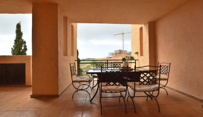 Fantastic corner apartment in Calanova Golf in La Cala de Mijas. The apartment has 3 bedrooms and a panoramic view over the 18 holes golf course of Calanova and towards the sea.