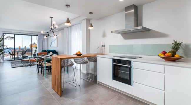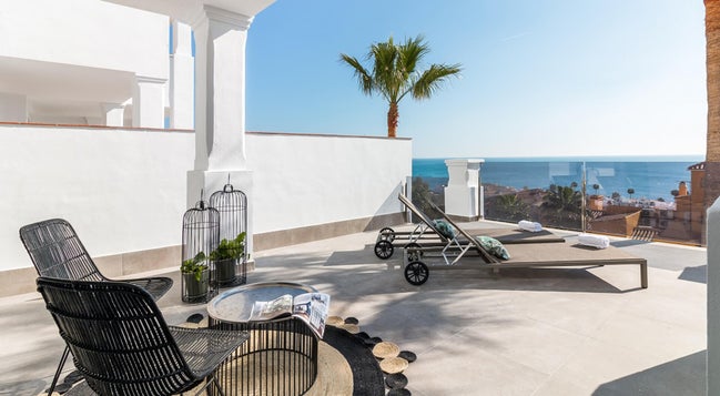 The properties are south oriented to make the most of the wonderful Costa del Sol weather. They apartments and penthouses are constructed and finished with top quality materials with focussed attention to detail, ceramic floors, high ceilings, open plan kitchens, a fire place, and ensuite bathrooms that boast amazing panoramic sea views. The large terraces have dark glass fences, so your view is not interrupted.