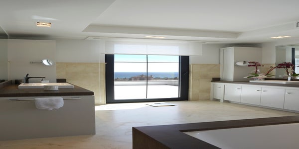 The villa has 5 bedrooms with 2 bathrooms and a guest toilet. The master suite has a beautiful private bathroom with a panoramic sea view. The property has underfloor heating throughout and electric blinds in all rooms.